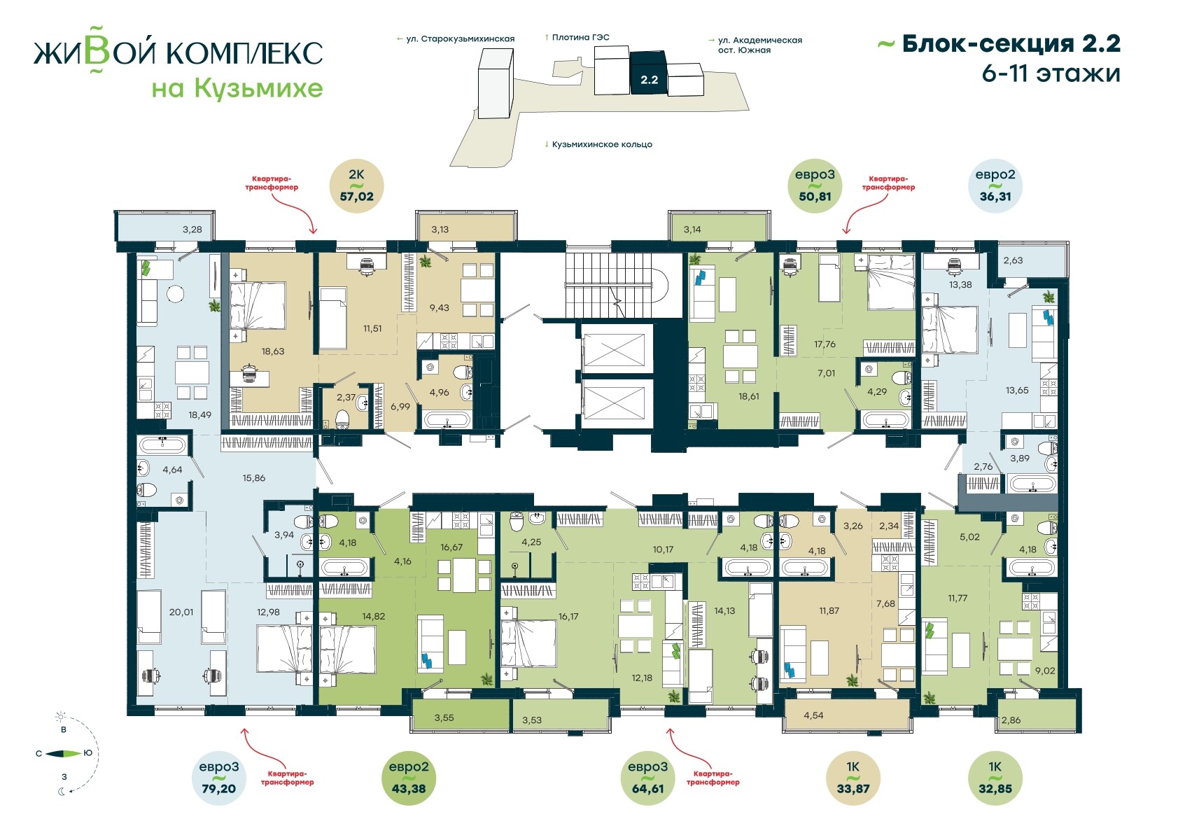 2-комнатная, 57.02 м²